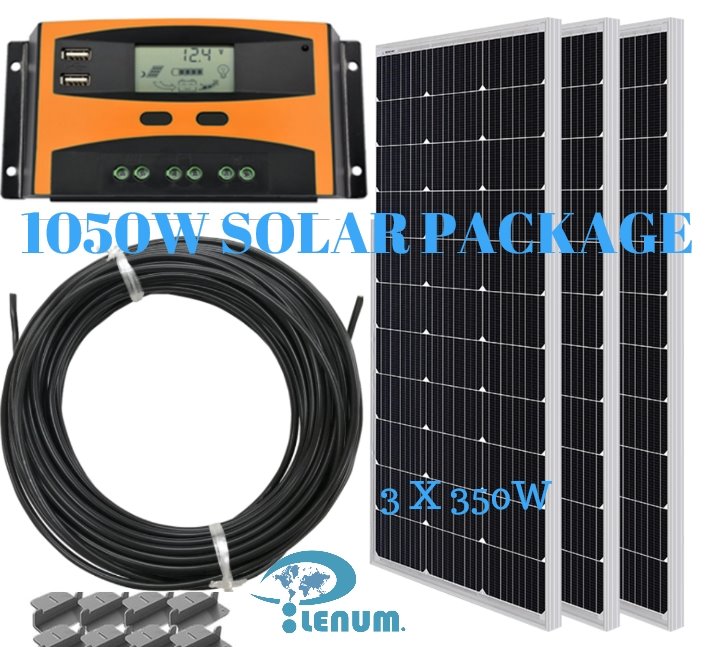 1050W – APS SOLAR PANEL PACKAGE 3 PANNEAUX 350W Inclus:Regulateur Et 50 Pieds Fil