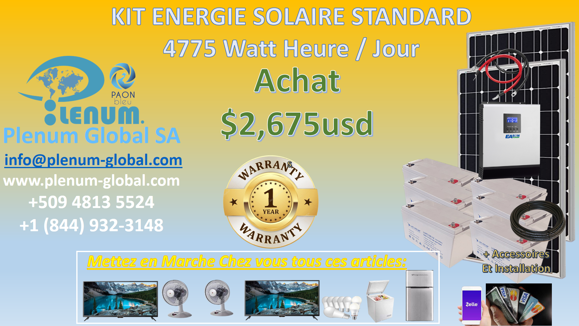 Home → KIT ENERGIE SOLAIRE STANDARD 4775 Watt Heure / Jour