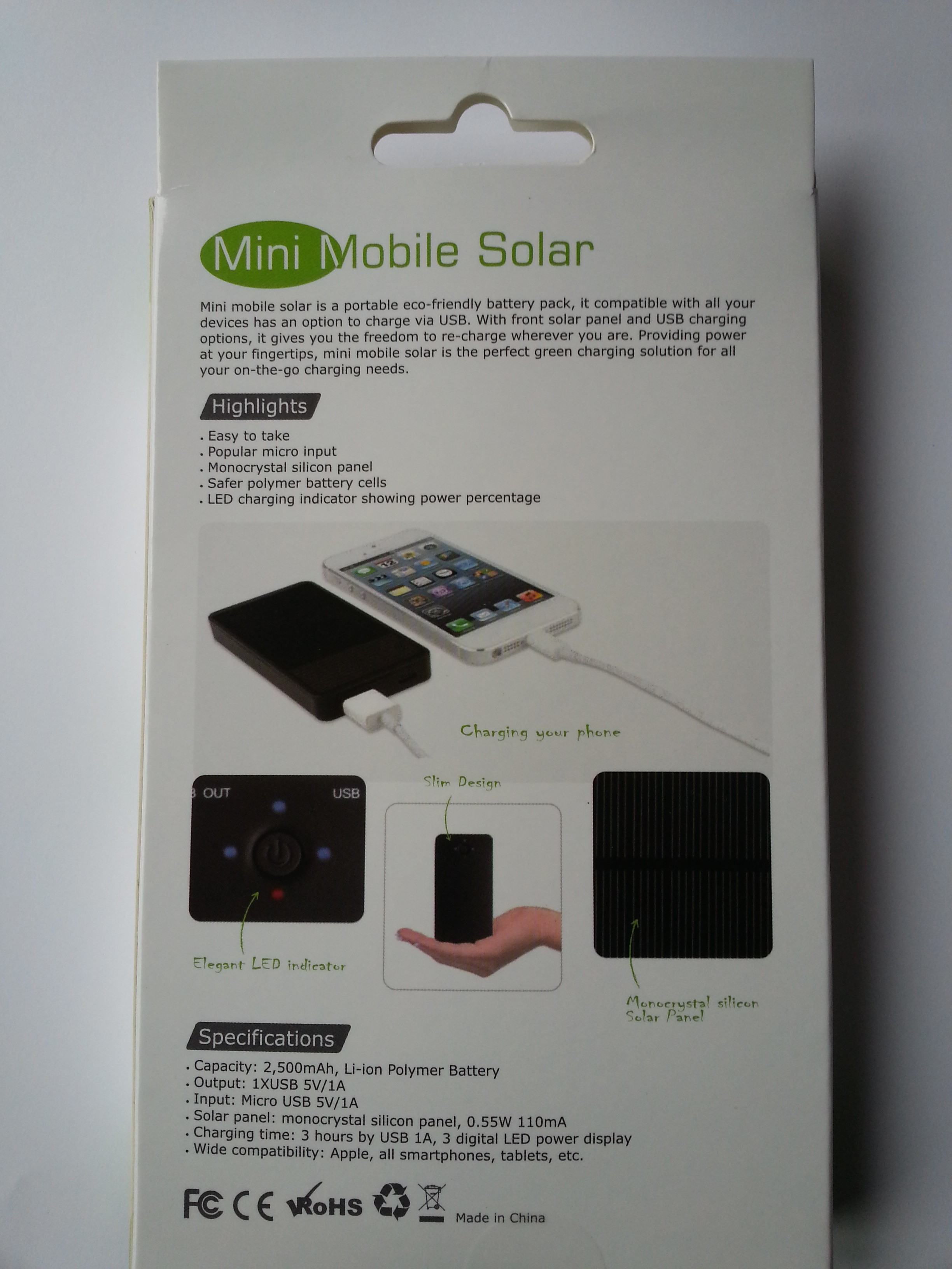 • Solar panel: Monocrystal silicon panel, 0.55W