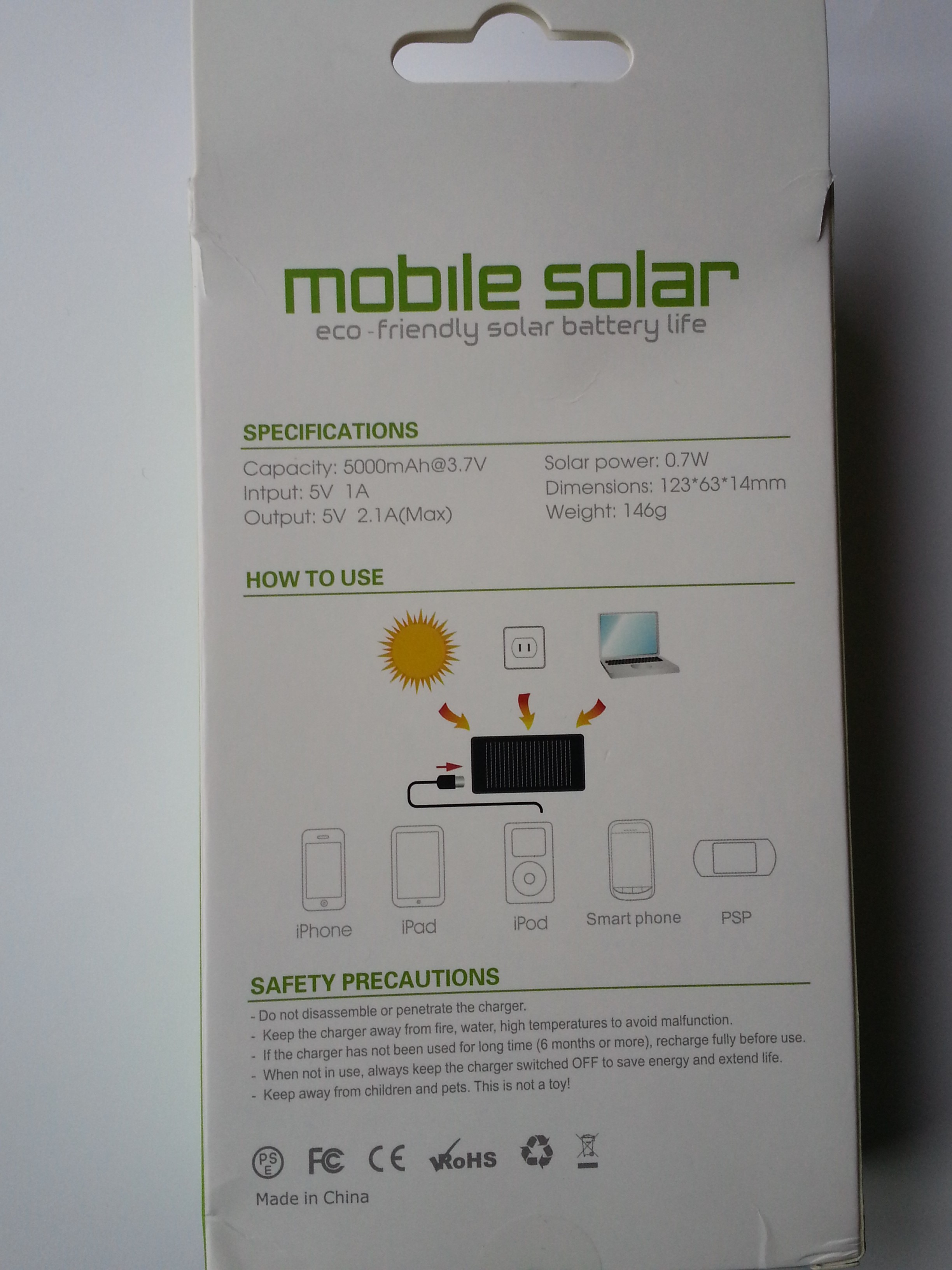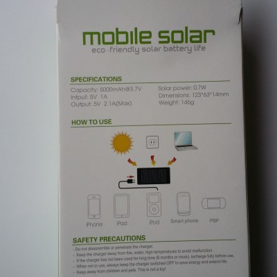 Capacity: 5,000mAh; Li-ion polymer