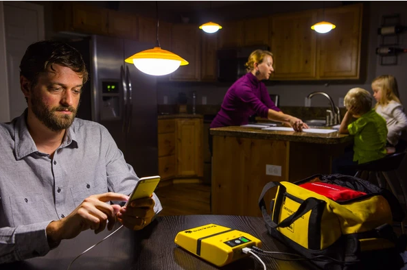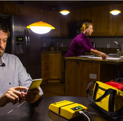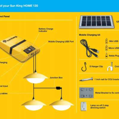 The modern solar lighting and energy hub for off-grid homes and businesses. The Home 60 brings modern lighting and energy to homes living off of the electric grid.  Once installed, the Home 60 provides bright, 100 lumen diffuse fixed room lighting to three separate rooms.  Included wall-mounted light switches provide modern convenience and the central power hub features standard 5.5V USB and 12V power outputs to power mobile phones and DC appliances.