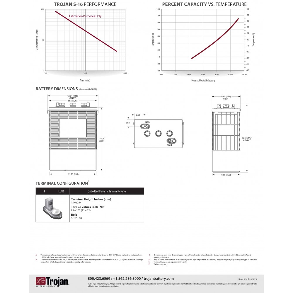 Trojan S-16 – TROJAN SILVER BATTERY 6V 362A